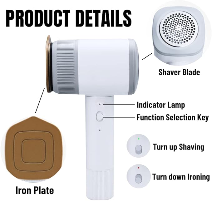 Temperatura Ajustable: Control de calor variable para adaptarse a todo tipo de prendas, desde nailon hasta lino grueso.