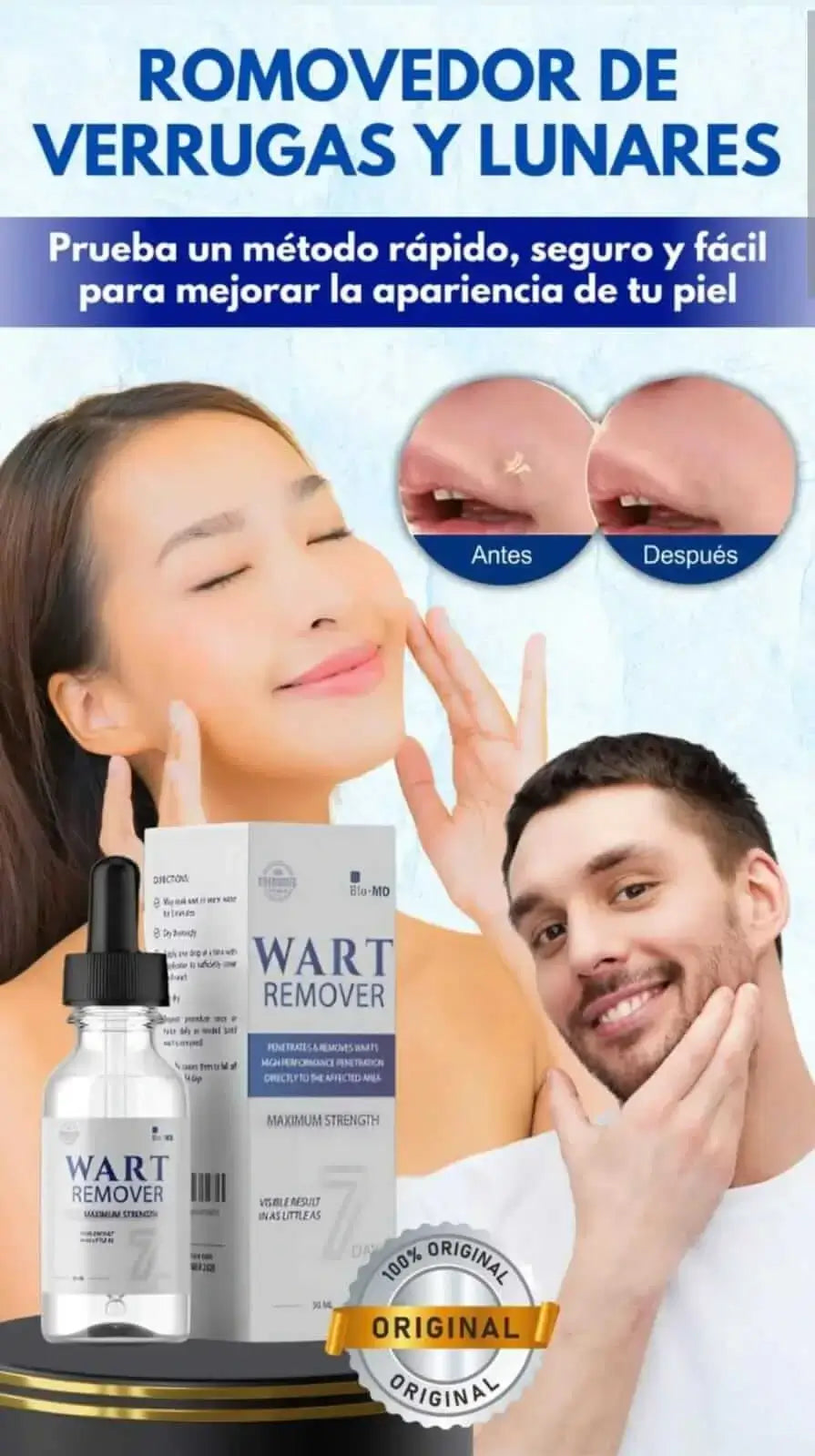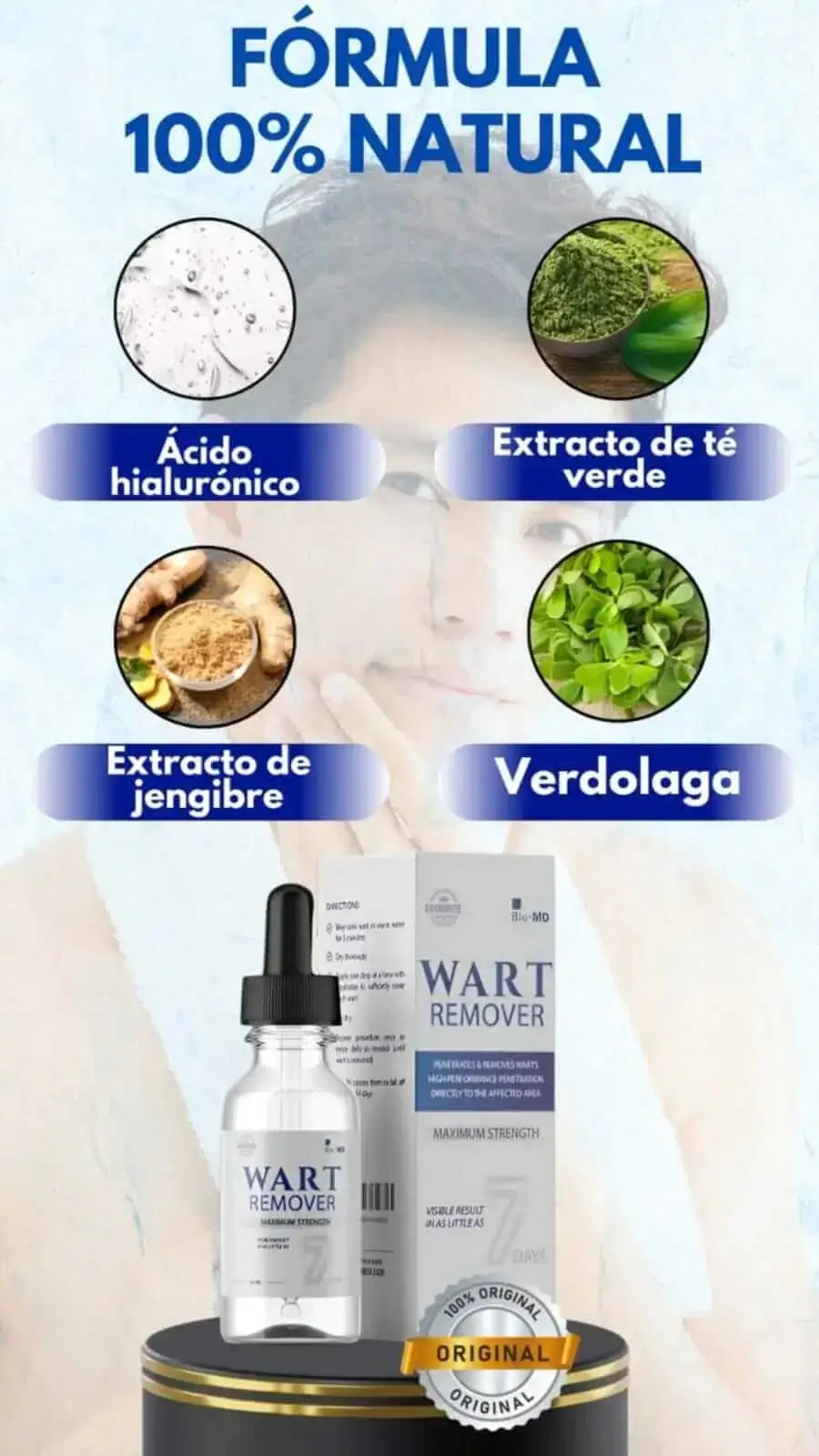Con Wart Remover™ puedes tratar cualquier tipo de verruga desde casa, de forma natural, progresiva y sin dolor, sin miedo a cicatrices ni quemaduras.